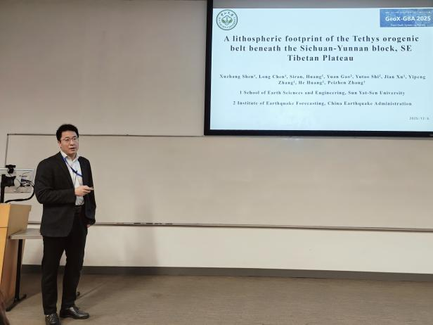 我院副院长沈旭章教授带领师生积极参与本次学术盛会,与来自大湾区的同行学者展开深入交流,并通过口头报告与海报展示等形式,全面呈现了我院在相关领域的最新科研进展与学生培养成果。其中,沈旭章教授作为GBA组织委员会成员,开展了题为“A lithosphere footprint of the Tethys orogenic belt beneath the Sichuan-Yunnan block, SE Tibetan Plateau”的专题报告。我院博士研究生陈龙荣获优秀学术报告/海报(题目为:Moho upbending during reactivation of compressional orogens: A case study from the Qilian Shan)。