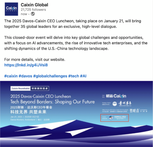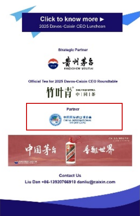 1月21日,进博会与顶尖商业峰会——财新·达沃斯CEO午餐会合作,在财新线上、线下传播渠道中展示进博会Logo,增加进博会的曝光度与知名度,财新网站广告预计触达访问用户240万人次;线上广告预计触达超980万人次;EDM预计触达9万人次;线下传播触达来自美国、加拿大、新加坡、德国等的30位全球顶尖意见领袖。