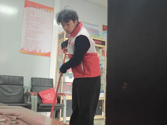 忙碌的高峰总会过去,但环境的维护却是一刻不能停的。人潮退去后,驿站的地面上难免留下些纸屑、空瓶,桌椅也会被推得东倒西歪。郑柏阳会趁着客流的间隙,拿起抹布和扫帚,把饮水机、充电台面擦拭一遍,把桌椅摆放整齐。说实话,这种重复性的劳动并不轻松,但看着驿站重新变得窗明几净,心里特别踏实。毕竟,对于那些或许还要在车站等上好几个小时的人来说,一个整洁舒适的环境,本身就是一种无声的安慰。