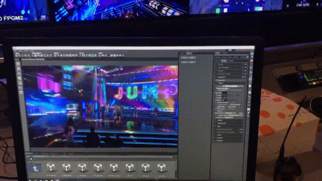 现场部署了三台虚拟机位,分别为一台固定机位、一台三轴摇臂机位以及一台飞猫机位,旨在全方位、多视角捕捉舞台精彩瞬间,为AR植入提供丰富多样的舞台画面素材。并配备三套强氧虚拟现实现场制作解决方案,以完成《J-U-M-P》舞台的AR植入工作。