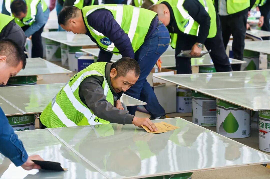 本次大赛由深圳市防水行业协会指导,深圳市防水行业协会地坪分会主办,深圳市特区建工职业技能培训学校与深圳市朗迈新材料科技有限公司联合承办,聚焦无溶剂环氧自流平地坪、聚氨酯超耐磨地坪两大核心项目,覆盖现代建筑、工业建筑等主流地坪应用场景。赛事秉持“公平、公开、公正”原则,经严格职业技能考核培训筛选参赛选手,以企业组队形式参赛,每组2名选手独立完成全流程操作,兼顾单人技术与团队协作能力考评。组委会特邀行业资深专家组成裁判组,由刘槐青担任裁判长,确保考评专业权威。
