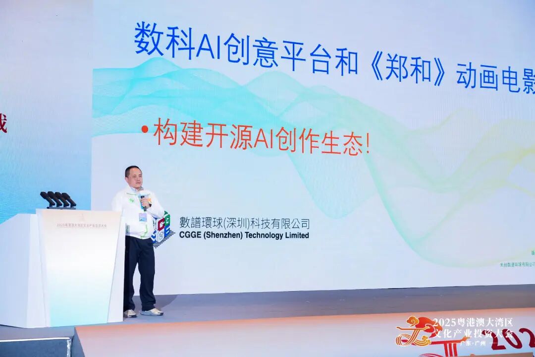 数谱环球(深圳)科技有限公司副总裁肖勇讲解数科AI创意平台,提倡构建开源AI创作生态,为动画电影、短视频、游戏设计等专业领域提供AI工具,提升业务效率。他还介绍了AI电影项目《郑和宝船:星海传奇》,影片以历史人物为核心,借助AI技术实现场景生成与角色动作优化,为国产动画的创新表达探索新路径。
