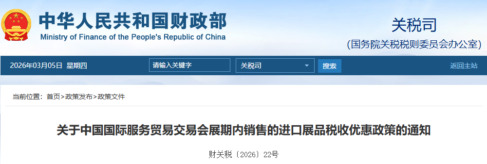 为支持办好中国国际服务贸易交易会(以下称服贸会),现就服贸会展期内销售的进口展品税收优惠政策通知如下: