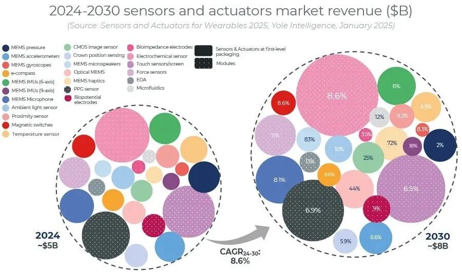 如果您希望购买《面向可穿戴设备的传感器和执行器-2025版》报告,请联系麦姆斯咨询王懿,邮箱:wangyi#memsconsulting.com(#换成@);电话:17898818163。