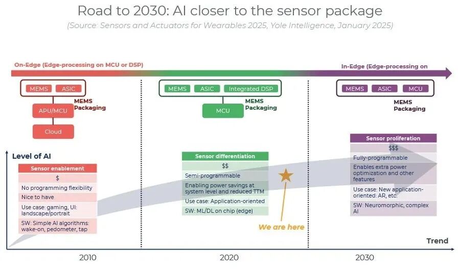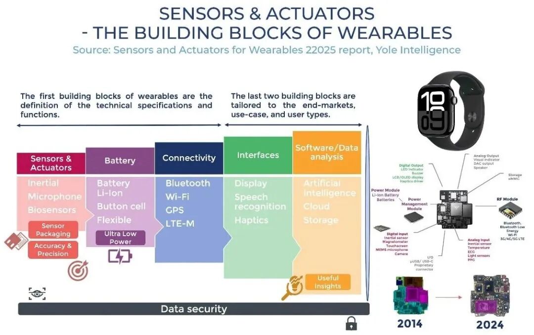 人工智能(AI)和集成传感器的进步推动了可穿戴市场的迅速发展,法国知名研究公司Yole预计可穿戴设备应用的传感器和执行器市场规模将在2030年达到80亿美元,这为MEMS与传感器制造商带来了巨大的发展机遇。