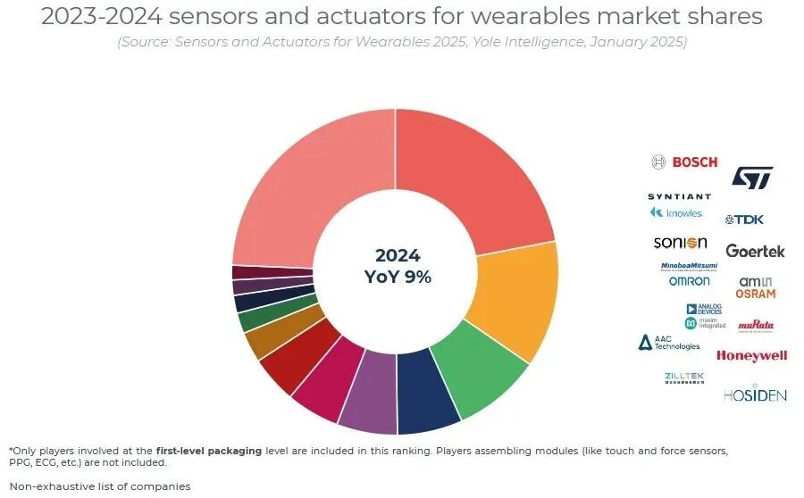 2023-2024年可穿戴传感器和执行器主要厂商及市场份额