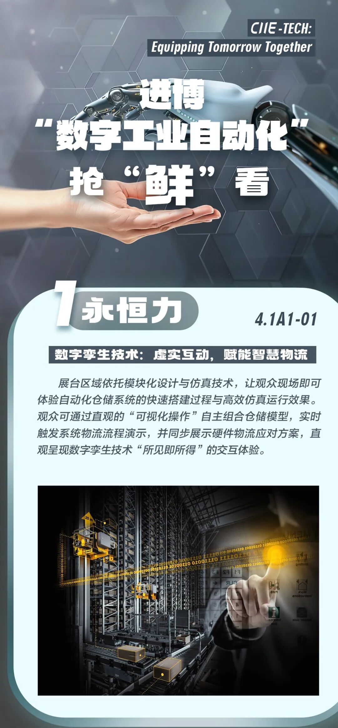 数字工业自动化是指通过数字技术与工业设备、生产流程深度融合,实现生产过程的自动感知、决策、执行与优化,是制造业从“传统模式”向“智能模式”转型的核心驱动力。本次进博会数字工业自动化专区抢“鲜”看,将带您揭开部分新展品、新技术的神秘面纱。