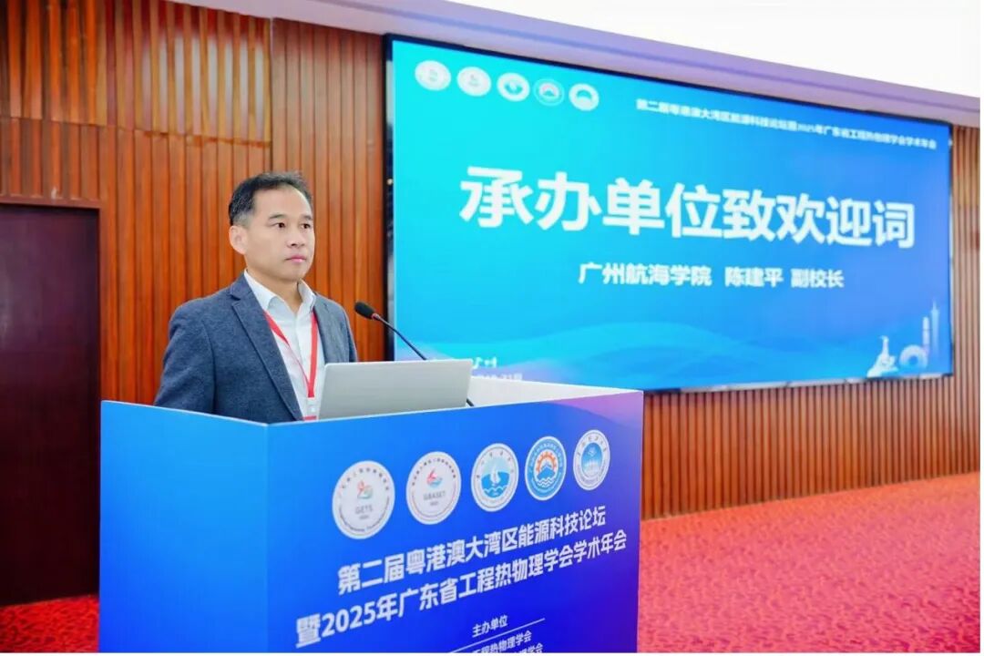 12月20日上午,第二届粤港澳大湾区能源科技论坛暨2025年广东省工程热物理学会学术年会(以下简称“论坛”)正式开幕。广州航海学院陈建平副校长代表承办单位致辞,对与会专家学者表示热烈欢迎。陈教授指出,广州航海学院作为华南地区唯一独立建制的海事本科院校,紧密对接国家“海洋强国”、“交通强国”战略,在能源与动力工程、海洋新能源等领域形成特色优势,期待通过本次论坛深化产学研合作,共同为湾区能源科技创新与人才培养贡献力量。