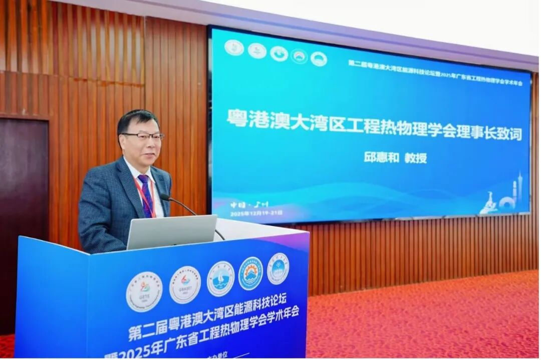 粤港澳大湾区工程热物理学会理事长、香港科技大学可持续能源与环境学域主任邱惠和教授致辞。邱教授指出粤港澳大湾区在能源科技研究与工程应用方面具有显著区位优势和良好基础,希望通过本次会议进一步加强区域内高校、科研机构与企业之间的合作交流,共同推动能源科技与工程热物理领域的创新发展。