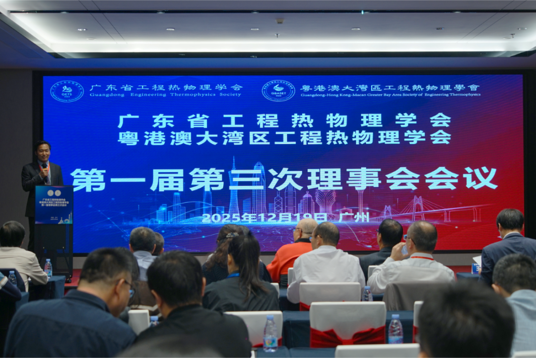 12月19日,会议同期召开了广东省工程热物理学会/粤港澳大湾区工程热物理学会(以下简称“学会”)理事会会议。会议听取了秘书处工作汇报,正式成立了科技委员会,审议并通过了科技委员会名单、新增副理事长单位、新增理事、《用章流程》等相关提案,并举行了学会相关职务聘任仪式。与会理事围绕学会组织建设、学术活动开展及未来发展规划等内容进行了深入讨论,就进一步提升学会学术影响力和服务能力达成共识,为学会下一阶段工作的有序推进奠定基础。