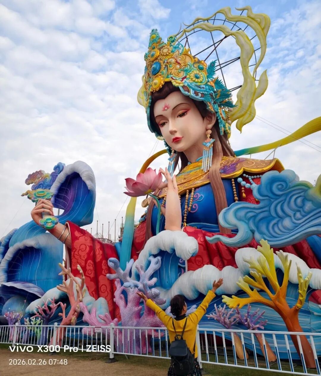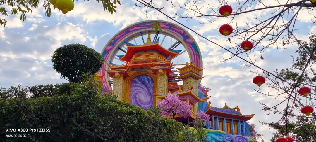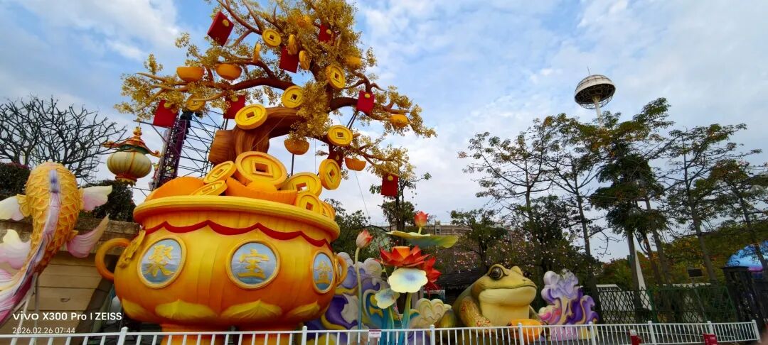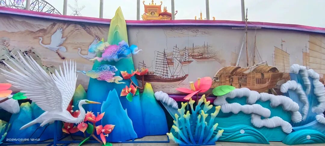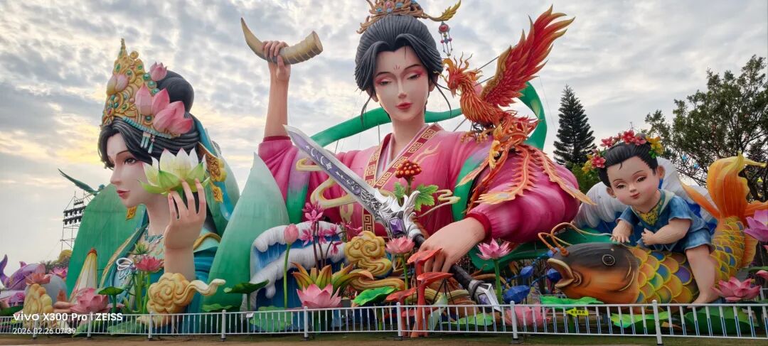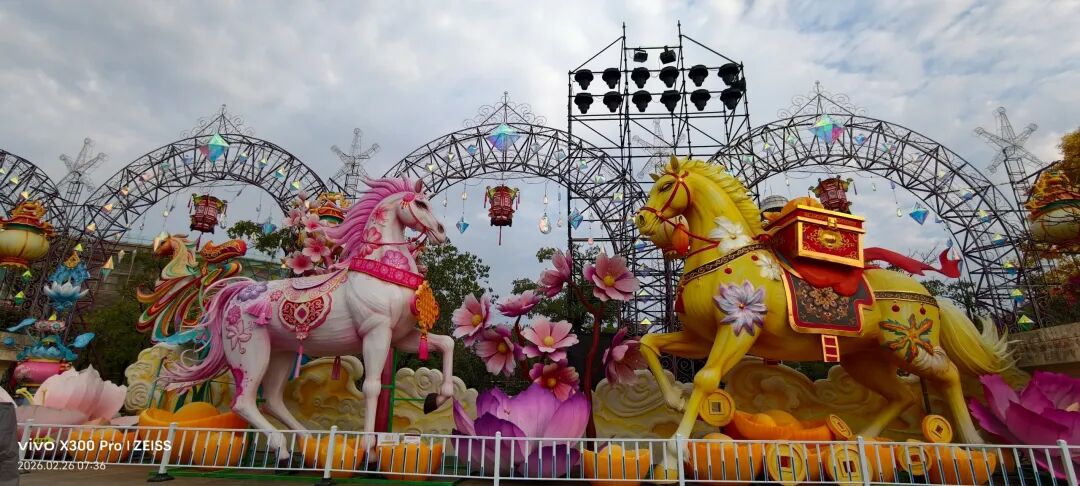 福建超大新春灯会,占地约270亩,共31组灯组(5组特大型+10组大型)水上灯组·桃海仙踪:全长超220米、高约25米,水面倒影超震撼。山海神画、海峡珍珠、潮玩一厦、海丝风情等九大主题板块,NPC巡游、非遗市集、水陆演艺等沉浸式体验。巨型神话人物群像灯组,衣袂飘飘,身旁锦鲤跃动,手持法器的姿态威严又灵动,自贡工艺的细腻在白天一览无余。近距离看海神灯组,凤冠霞帔的细节精致到发丝,身旁海浪、珊瑚环绕,蓝红撞色的视觉冲击感直接拉满。海神灯组与远处的灵岩阁同框,神女持莲,海神伫立,金色楼阁连接山海,神话意境拉满。粉色仙山连绵起伏,金凤凰立于紫阁之上,桃花树点缀其间,像闯入了仙侠剧里的福境圣地。海神,衣袂翻飞的弧度搭配海浪底座,每一处褶皱都藏着工艺的匠心,白天看也自带仙气。粉白与金黄双马并驰,身披繁花鞍具,脚下元宝堆叠,马年“马到成功、成双成对”,寓意很好。粉色桃林倒映在水面,仙山、神鹿点缀其间,一步一景,像走进了世外桃源的春日画卷。在围栏外拍的彩色仙阁,粉紫相间的轮盘搭配天宫造型,和红灯笼同框年味很浓也很美。金黄骏马昂首阔步,驮着宝箱与元宝,身后灯笼拱门环绕,马年“招财进宝”的好寓意拉满。红色天马振翅欲飞,身旁蓝鹿踏浪,繁花簇拥,寓意“马年腾飞,前程似锦”。踏在祥云与金元宝之上的粉马,有马年“一马当先”的昂扬气势,又把闽南花灯的细腻工艺展现得淋漓尽致。空谷南音 · 乐神灯组,将“中国音乐活化石”的雅致,揉进了马年新春的灯影之中。巨型聚宝盆灯组,金元宝、铜钱挂满枝头,旁边金蟾蹲守,马年“盆满钵满”的好福气,逛园就能沾到。我与海神合个影吧!很兴奋很知足。白天的灯组,每一处工艺细节都清晰可见,很震撼!晚上当所有灯组亮起,光影交织,这里的神话世界一定会更加梦幻。很期待,到底有多惊艳下次看完夜景灯展再分享!实用指南