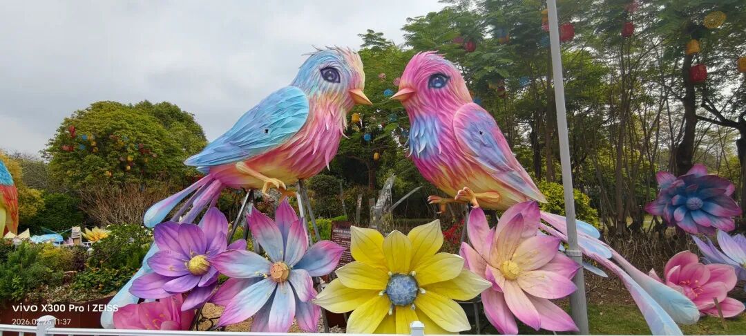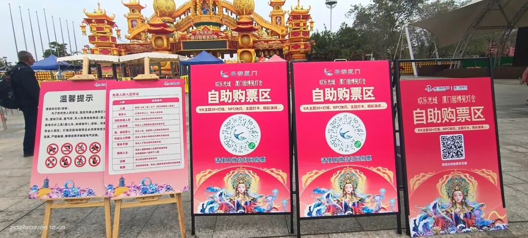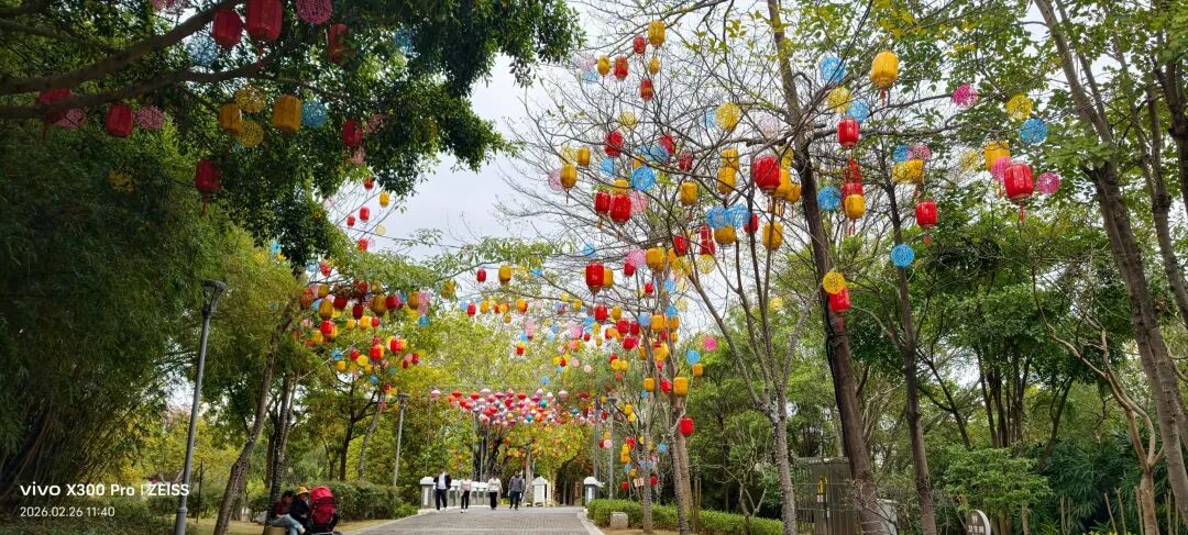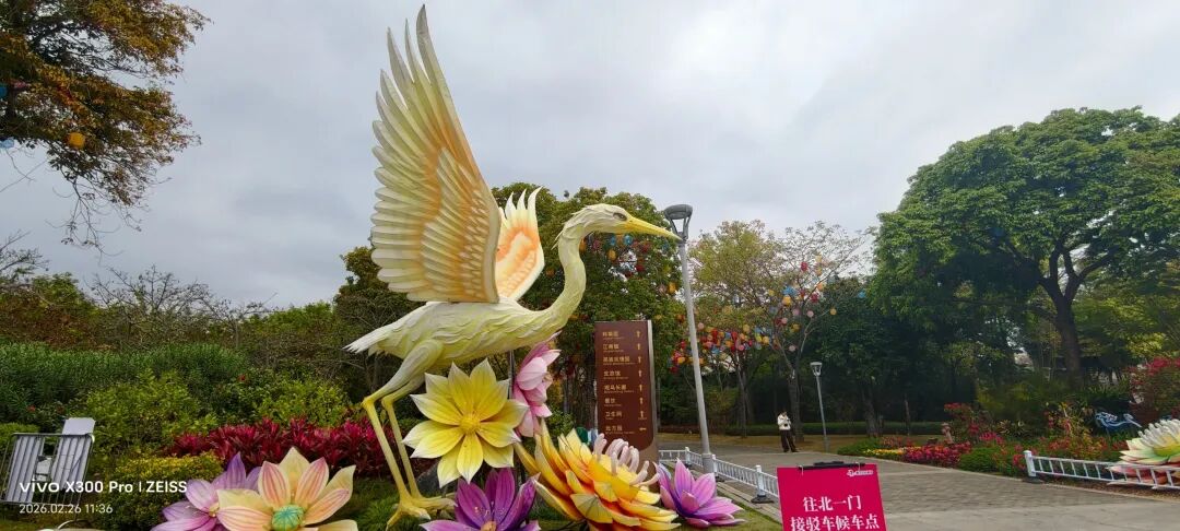 “福马当先 福启新程”红底金字搭配繁花,马年春节的氛围感,从入园就被彻底包裹。粉蓝渐变的双鸟灯组,依偎在繁花中,“成双成对”的好寓意,春节逛园见者有份,讨一份姻缘与团圆的祝福。海丝主题长卷,古船扬帆,青花瓷器与海浪环绕,把厦门的海丝文化藏进灯景里,年味里藏着城市底蕴。白鹭展翅立于仙山海浪之上,厦门城市符号与春节灯景完美融合。“向海而兴 未来可期”主题画卷,寓意鹭岛马年扬帆远航,越来越好。灯笼树,五彩灯笼挂满枝头,搭配旁侧的巨型花朵装饰,白天色彩斑斓,晚上亮灯就是梦幻灯廊。纵深的灯笼步道,彩色灯笼沿着步道延伸,走在其中,被春节的热闹彻底包裹,沉浸式感受年味。随处可遇,很年味很美!萌趣春神灯组立于荷花丛中,身后红底“春节”字样,年味与萌趣双在线。红蓝门神灯组,威严又喜庆,春节逛园,先沾一份“出入平安”的守护福气。栏杆上的红绸祈福带,每一条都系着新春心愿,风一吹,全是对马年的美好期许。祈福红绸绵延不绝,搭配灯球花海,白天是红色的烟火气,晚上亮灯更显梦幻,免费就能拥有的祈福仪式感。金色白鹭灯组立于繁花中,羽翼舒展,姿态优雅,是具有鹭岛特色的新春打卡点。经典回顾|免费区夜景攻略