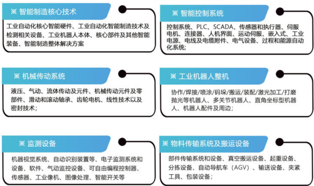 多关节机器人:六轴机械臂可实现0.02mm级重复定位精度,适用于汽车焊接、3C电子精密装配等场景。