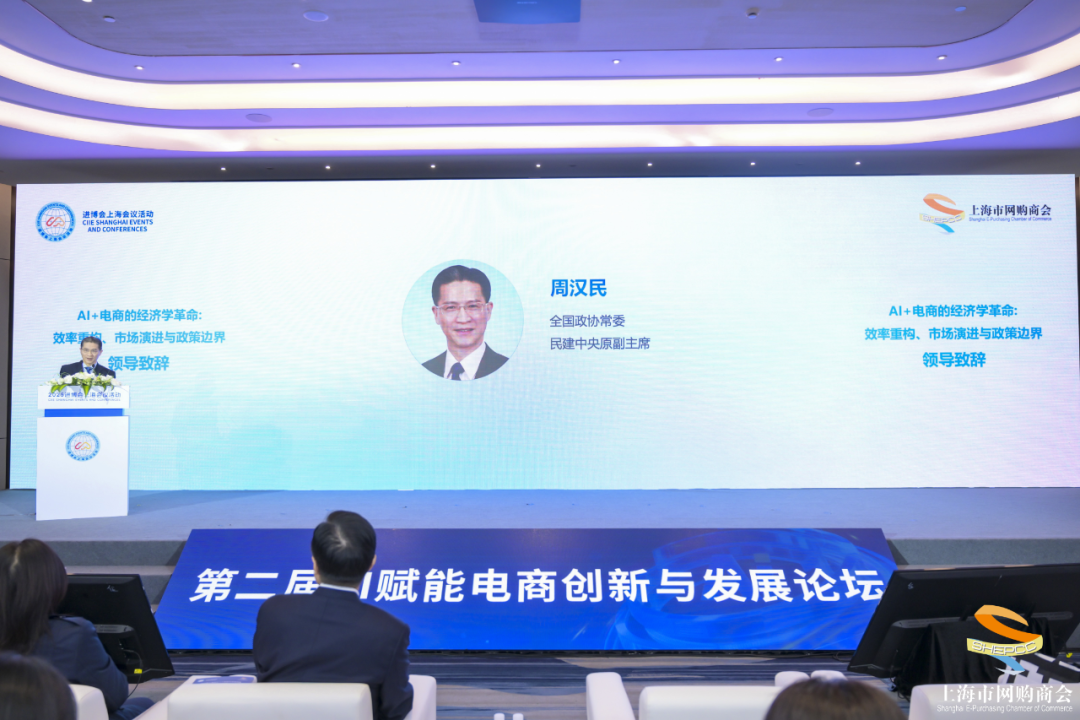 上午,由市商务委指导、上海市网购商会主办的“第二届AI赋能电商创新与发展”论坛在会场举行,周汉民会长出席并致辞。在数字经济与实体经济深度融合的今天,人工智能加速重构全球电商产业生态,上海正持续打造国际消费中心城市与科技创新策源地,亟需搭建开放协作平台,加速 AI 技术在新产业、新业态和新商业模式中的落地。