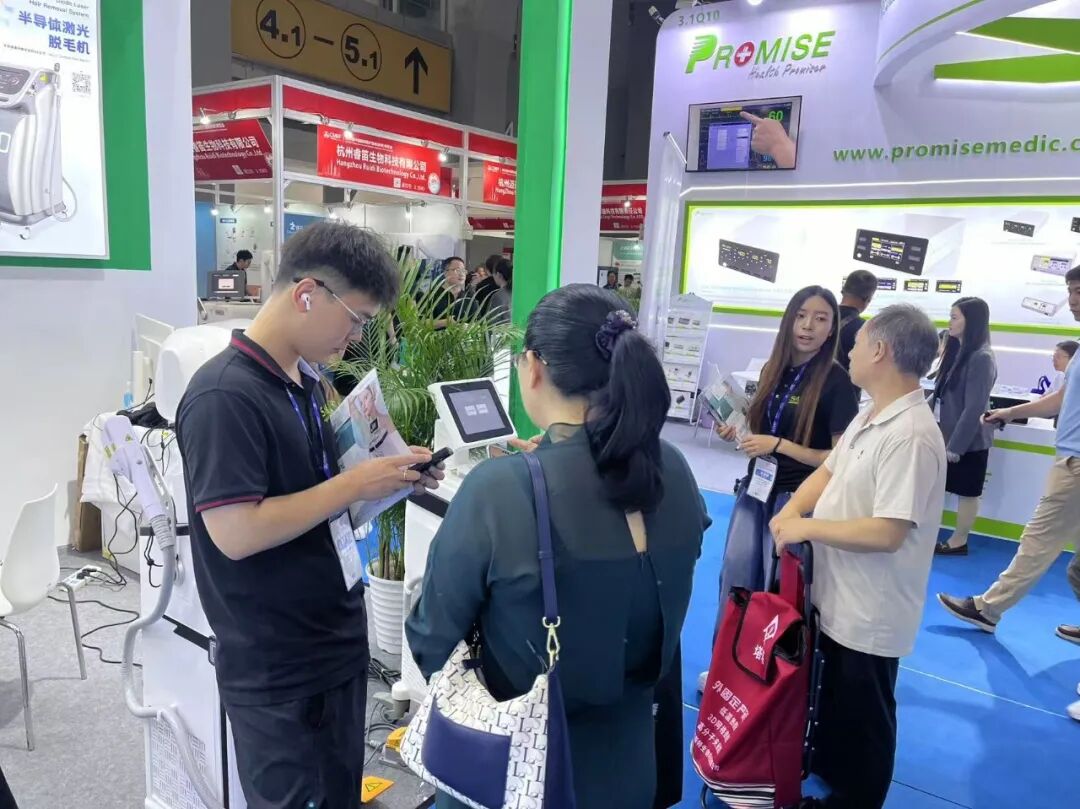 经过首日的深度耕耘,萨诺光电展位已积攒许多”新老“人气:既有合作多年的老朋友专程到访,第一时间体验新品的技术升级;更有众多行业新朋友驻足停留,在细致了解展品参数与临床应用细节的过程中,逐步感受到萨诺在医美设备领域的技术沉淀与独特竞争优势。