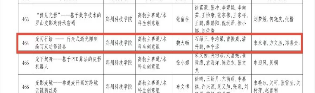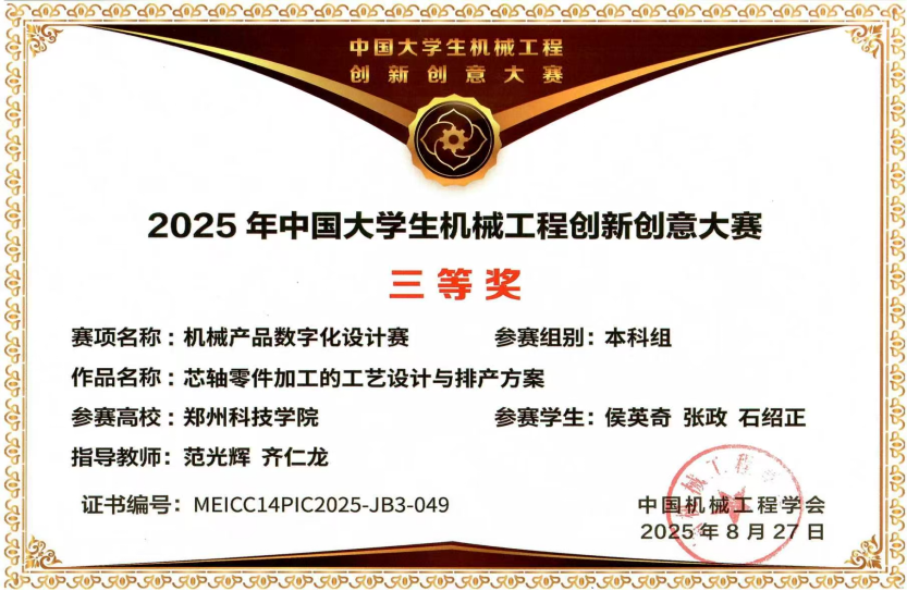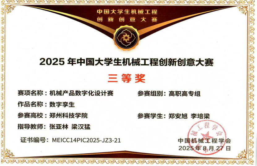 我社团成员在该比赛中在中国国际大学生创新创业大赛中大放异彩 —— 凭借 “光刃行绘--行走式激光雕刻绘写双功能设备”“微缩工艺巨匠---桌面级五轴数控机床” 等 3 个核心项目,从河南省千余支队伍中突围,一举拿下1 项一等奖、1 项二等奖、1 项三等奖,实现社团在该项国家级赛事中的奖项等级与数量双突破,成为学院科创领域的亮眼名片。