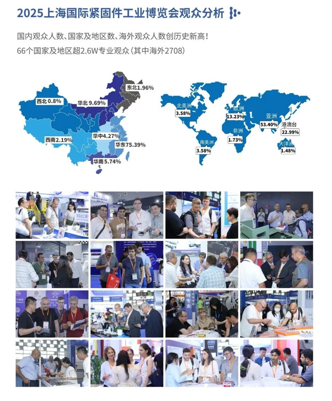 上海国际紧固件工业博览会的战略进阶,仰仗全球产业精英鼎力共筑的全链生态共同体。展会将以“全生态服务者”定位锚定使命,依托双展馆联动格局,聚力开辟高端紧固件“新质生产力”与“数智绿能”双轨并进的标杆范式,成就中国制造向世界输出紧固件产业标准的关键支点。