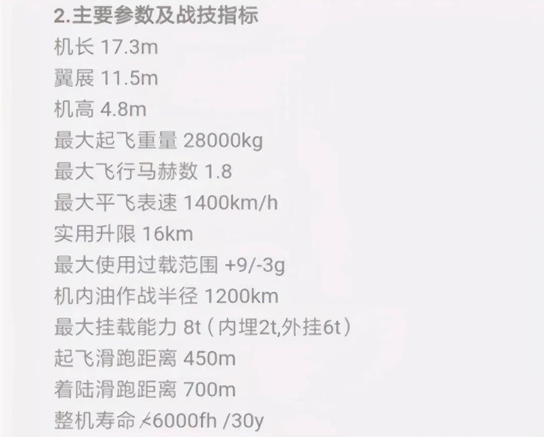 正常起飞重量22吨,指平时训练飞行时,一般不会超过的起飞重量,这是设计结构强度时的一个重要指标数据。大约是使用空重+飞行员(包括氧气、氦气)+5吨燃油+2吨弹药≈21吨。