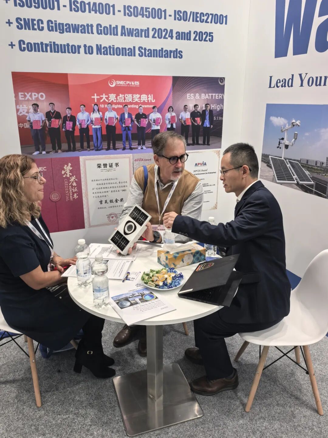 作为全球气象领域专业交流平台,本次博览会为行业协作搭建了重要桥梁。南京旗云参展人员与全球同行展商、气象专家围绕技术创新方向、行业发展痛点等议题展开深度交流,分享设备研发经验与应用案例,探讨气象监测技术与能源产业融合的创新路径,凝聚行业发展共识。
