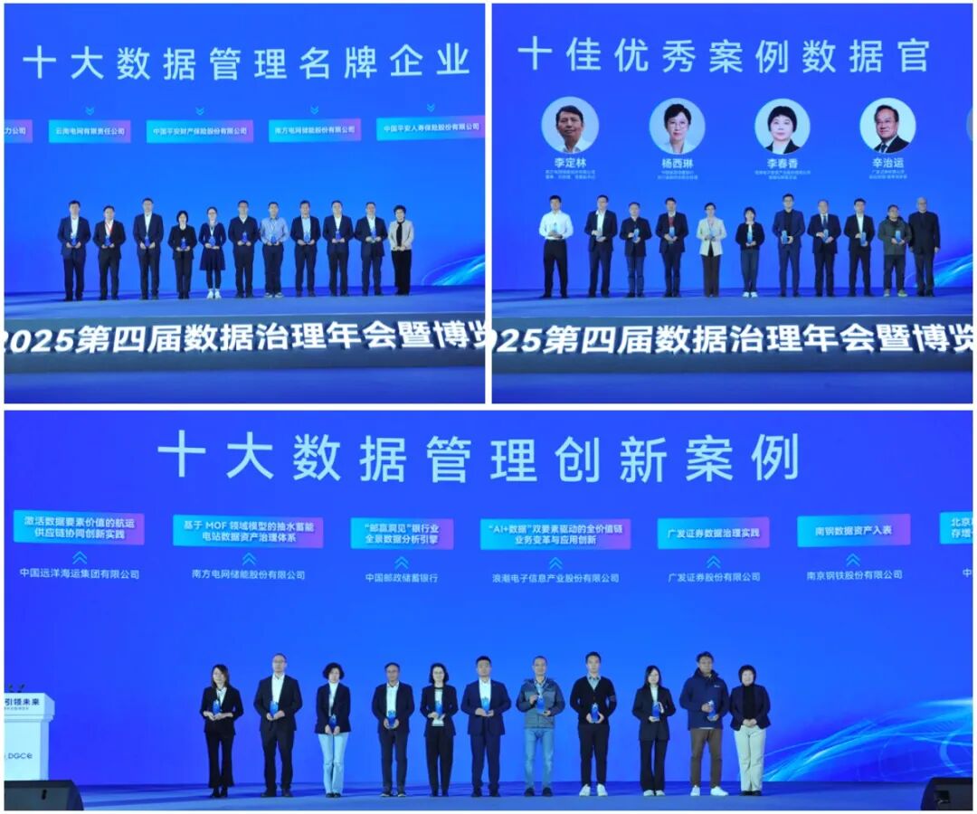 此外,会上还重磅发布《数据治理白皮书》和十大数据管理名牌企业、十佳优秀案例数据官、十大数据管理创新案例、DCMM优秀评估机构、2025年数据治理年会暨博览会优秀组织奖,以及“数智杯”数据管理创新应用大赛一、二、三等奖。
