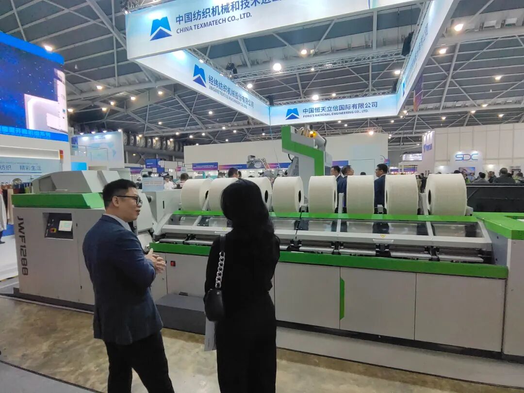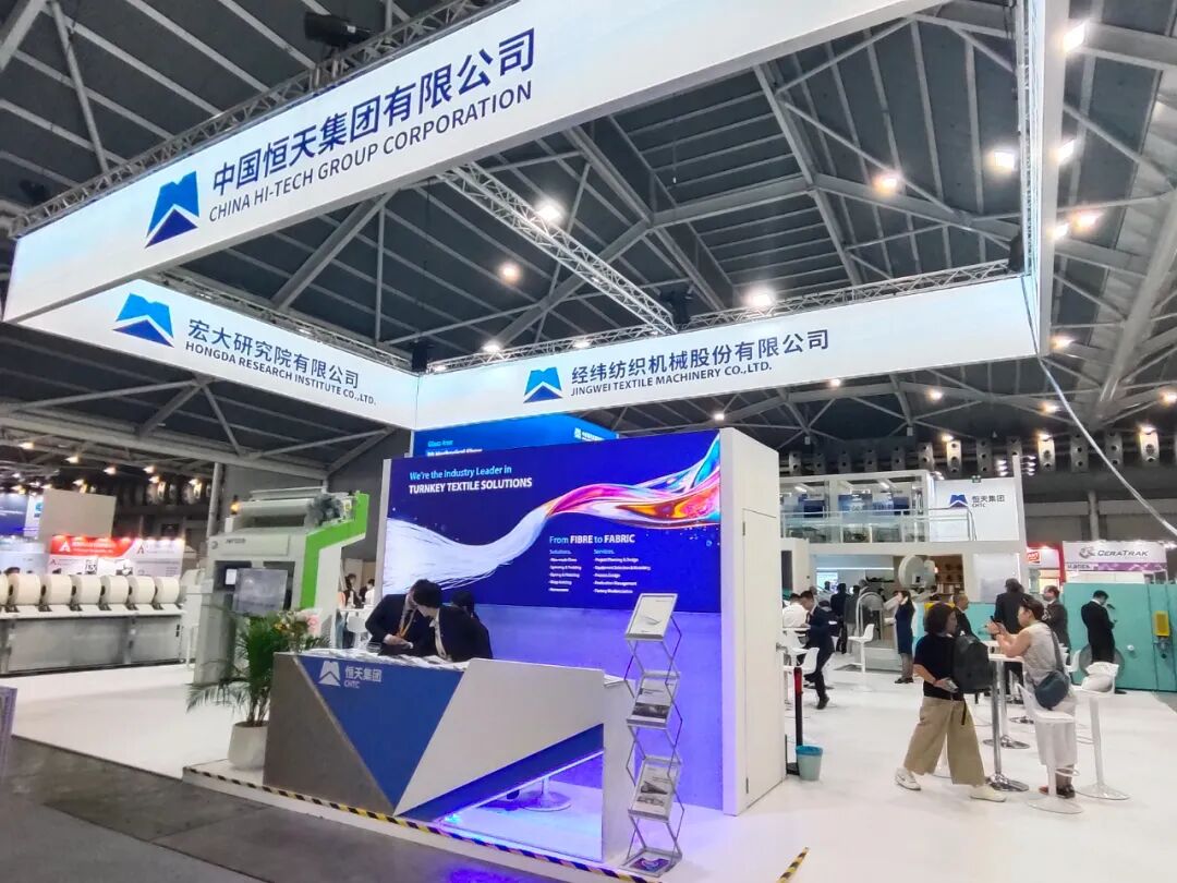 本次展会期间,经纬纺织机械有限公司旗下的青岛宏大纺织机械有限责任公司(以下简称“青岛宏大”)、经纬智能纺织机械有限公司(以下简称“经纬智能”)、沈阳宏大华明纺织机械有限公司(以下简称“沈阳宏大”)等集体亮相中国恒天集团站台,充分展示了其在智能化、高速化、绿色化方面的技术解决方案。