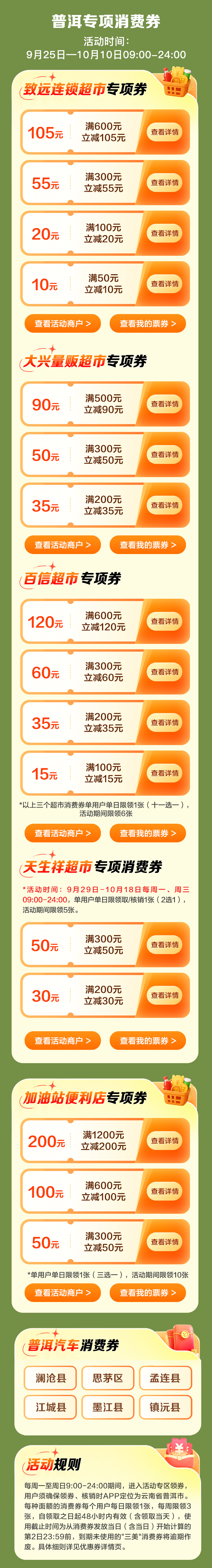 超市及汽车等多类消费券