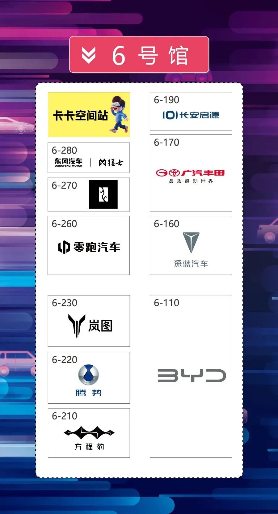 一年一度的卡卡趣游记又开始啦!车展期间全馆以及6号馆【卡卡空间站】将设置多个打卡点位,轻松玩转全场的同时更能获取小程序积分兑换“卡卡盲盒”好礼!