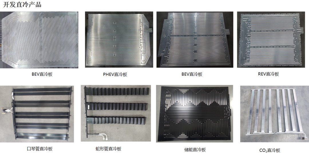 液冷板类型多样,1、主流为冲压大板,散热性能好,设计自由;2、口琴管结构简单,成本低,适用于小型车;3、挤压板用于商用车,可承重,主要应用于软包电池;4、蛇形管专用于圆柱电池散热;直冷结构类似液冷,但流道更细,耐压高。