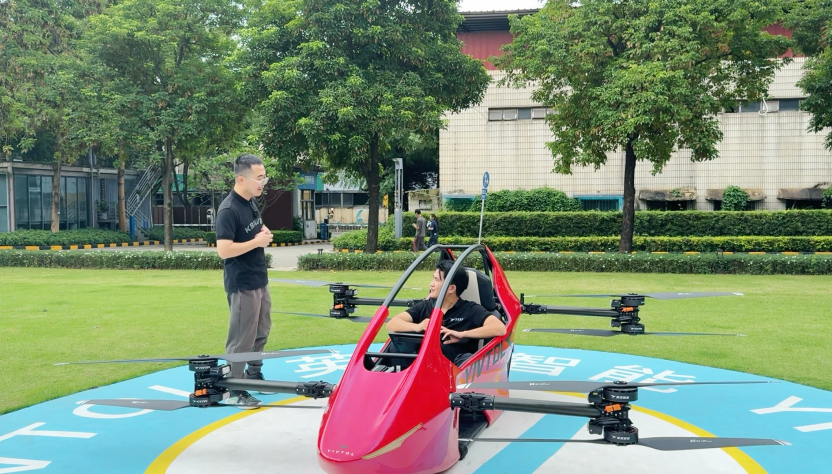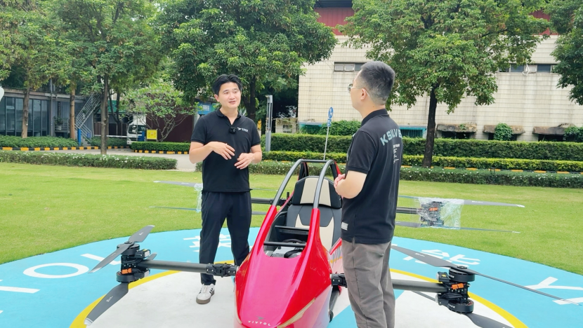 直播中,S-ZERO单人eVTOL的实机起降成为焦点。这款被称为“飞行单车”的载人飞行器,以流畅的升降表现和极具未来感的外观,引发线上观众热烈互动,陈源现场讲解了产品核心特点: