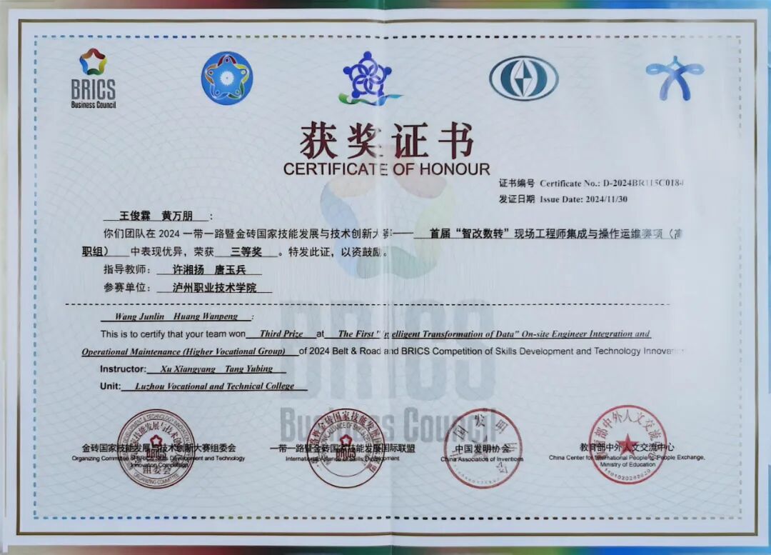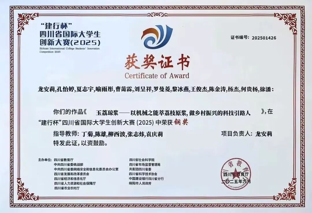 陈德泉:2025届电子信息工程技术专业毕业,在校期间获三好学生、代英奖学金等荣誉,2025年专升本考试中取得381分成绩(位列全省前200名),成功被四川轻化工大学录取。
