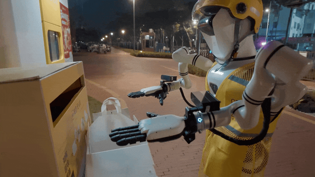 速腾聚创全球首秀的AI机器人 “配送小哥” 完成了惊人的长程复杂任务演示:在完全无人工干预的情况下,自主完成了从礼品识别、精准抓取、3D打包、货架存取、自主导航运送、自动拆盒、最终递送到折叠回收包装盒等近20个连贯复杂的操作步骤。