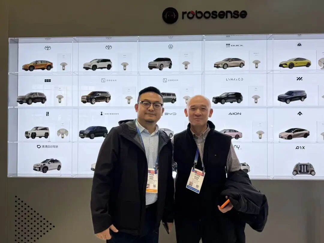 在机器人核心感知领域,赵煜到访了全球车载激光雷达市场占有率第一的中国公司——RoboSense速腾聚创的展台,并获其北美总裁赵培的亲自接待讲解。