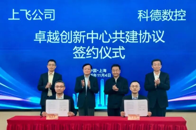2025年前三季度,乔锋智能营业收入18.71亿元、同比增长56.71%,归母净利润 2.77亿元、同比增长83.55%。通用设备、消费电子和新能源汽车等三大行业成为其业绩增长的主力。同时,随着东莞、南京新建产能陆续投入使用,产能得到显著提升,大幅提高了公司生产交付能力和交付效率。6.科德数控与上飞公司签署卓越创新中心(COE)共建协议2025年11月4日,科德数控股份有限公司与上海飞机制造有限公司在中国商飞总部签署《卓越创新中心(COE)共建协议》。双方将围绕大飞机复杂核心零件的先进加工工艺、高端五轴机床、高档数控系统、柔性智能产线等方面,务实合作开展新技术、新工艺、新装备的研究和成果转化工作,共同推动我国民机制造技术和高端数控装备的产业升级和高质量发展。7.台群精机第5万台立加下线