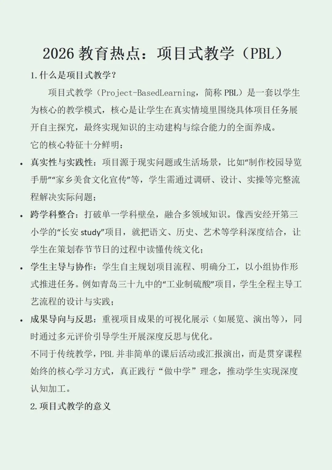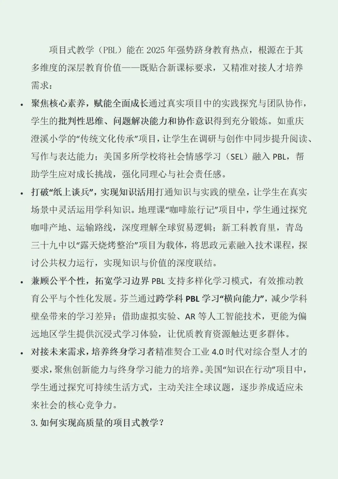 项目式教学(PBL)核心要点精简清单