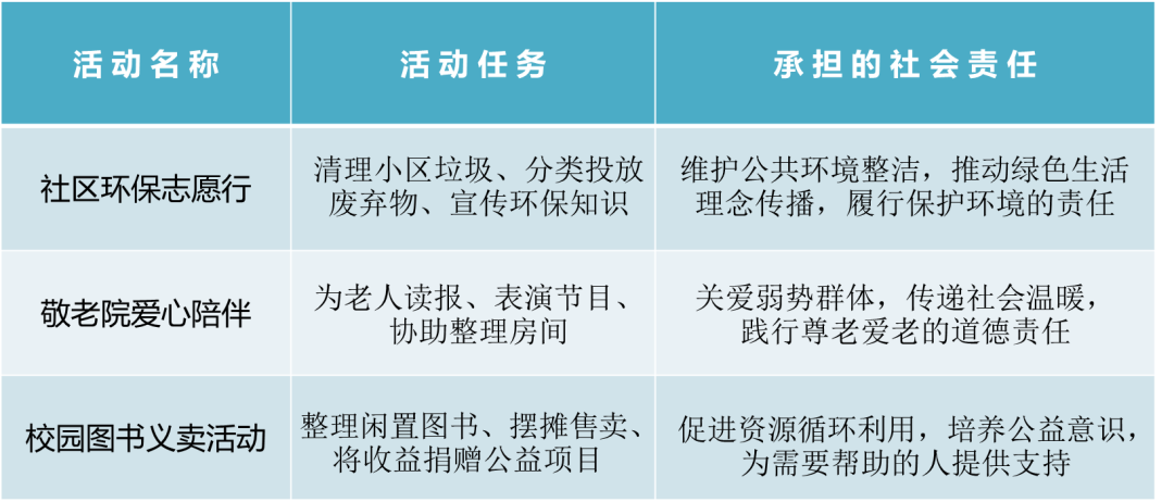 ①参加志愿服务:在社区参与志愿服务,如帮助清理公共区域、关爱孤寡老人;