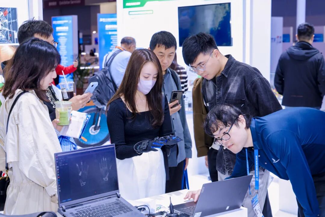 此外,新研发的 智能服装 与 柔性导线 也吸引了大量来自智能制造、机器人、医疗等领域的专业观众驻足交流。