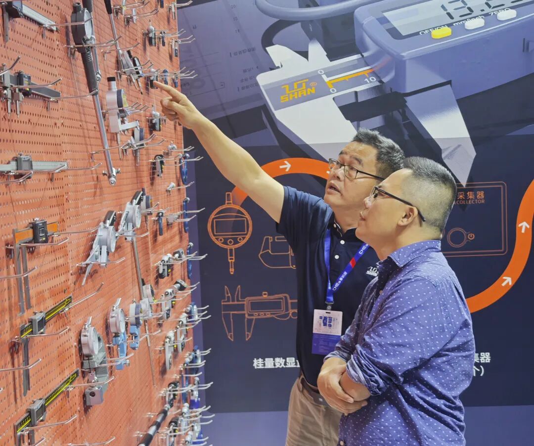 (现场工作人员向客户介绍量具产品)