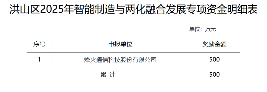附件:洪山区2025年智能制造与两化融合发展专项资金明细表