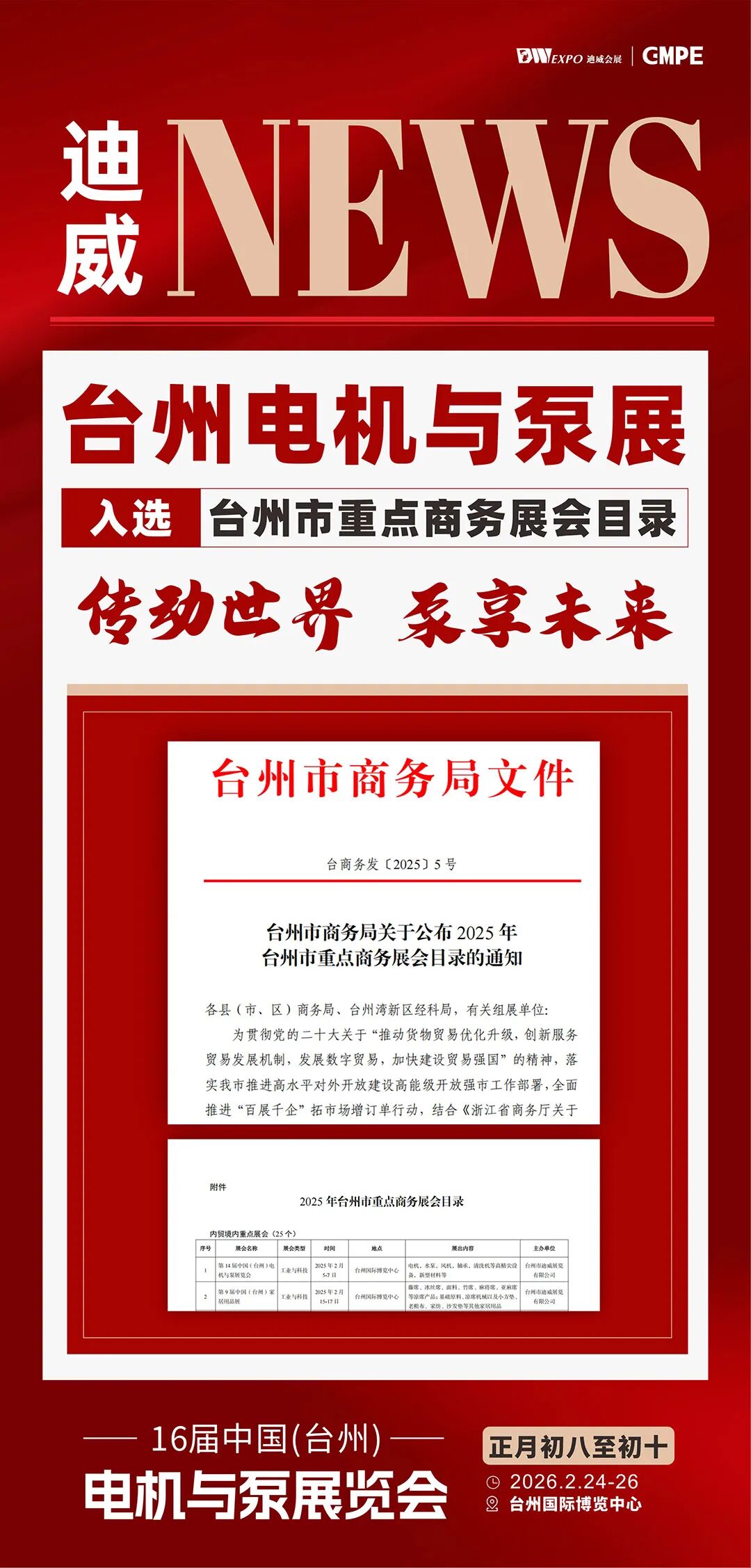 开年想省成本、拓渠道、抢订单?正月初八至初十,台州国际博览中心,这场电机与泵展就是你的“开年商机钥匙”。