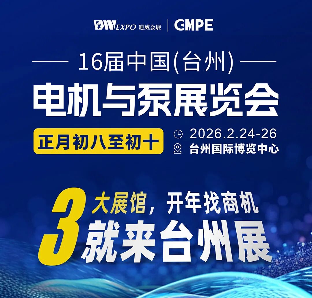 别折腾了——2026中国(台州)电机与泵展览会,把电机泵产业的“全产业链资源”直接摆到你面前!从货源到渠道,从技术到订单,一次把开年的“生意底盘”扎稳。