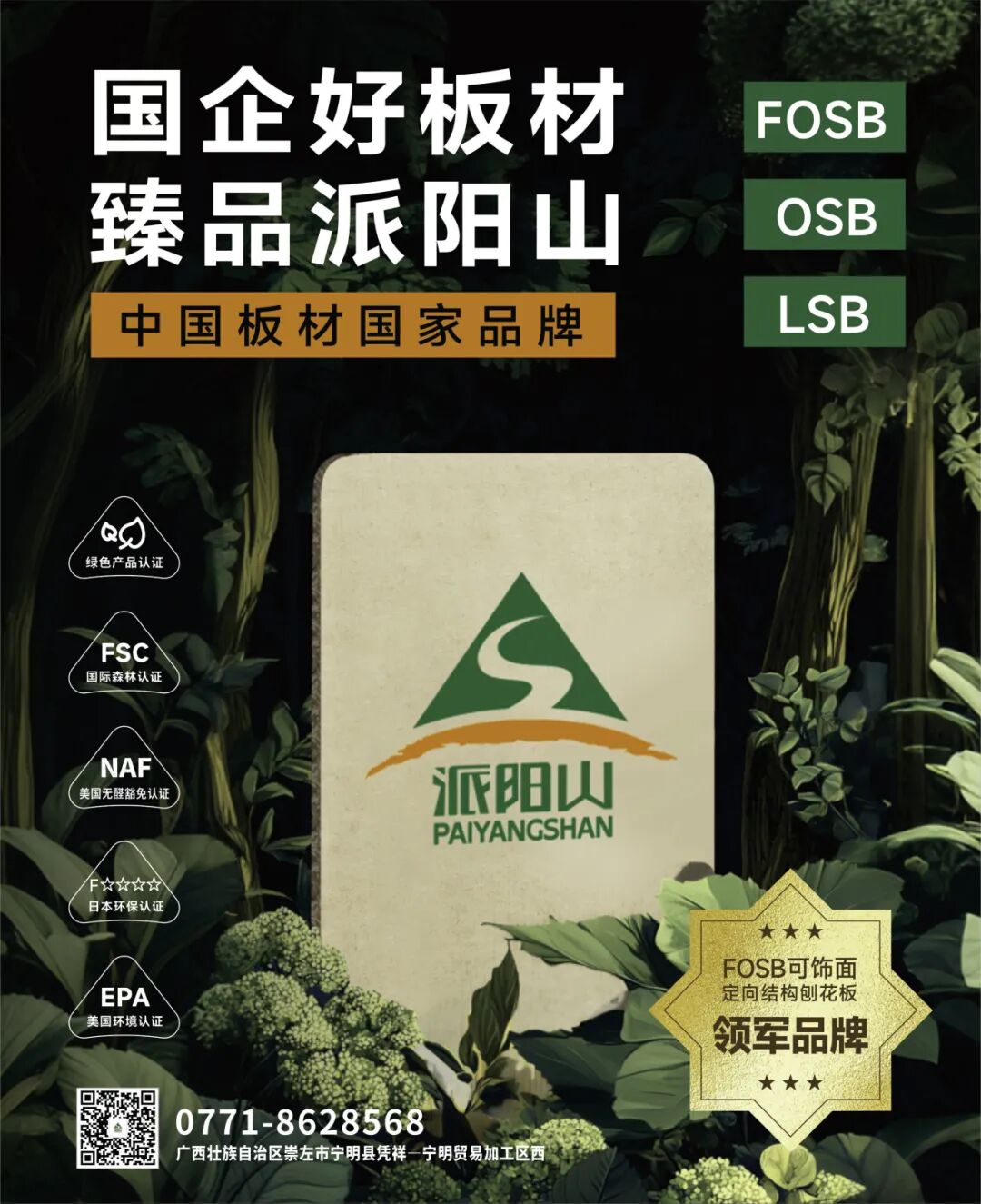11月22-24日,2025广西国际林产品及木制品展在南宁国际会展中心隆重举办,展览面积达5.5万平方米、汇聚超1000家优质企业的行业盛会,以“数智赋能林木业高质量发展”为主题,搭建起全球林业产业交流合作的高端平台。作为国家高新技术企业、国家绿色工厂、国家智能制造优秀场景、国家林业标准化示范企业,祥盛股份携“派阳山”品牌全系列高端刨花板产品与绿色智造最新成果闪耀展会,用硬核实力诠释“绿水青山就是金山银山”的发展理念。