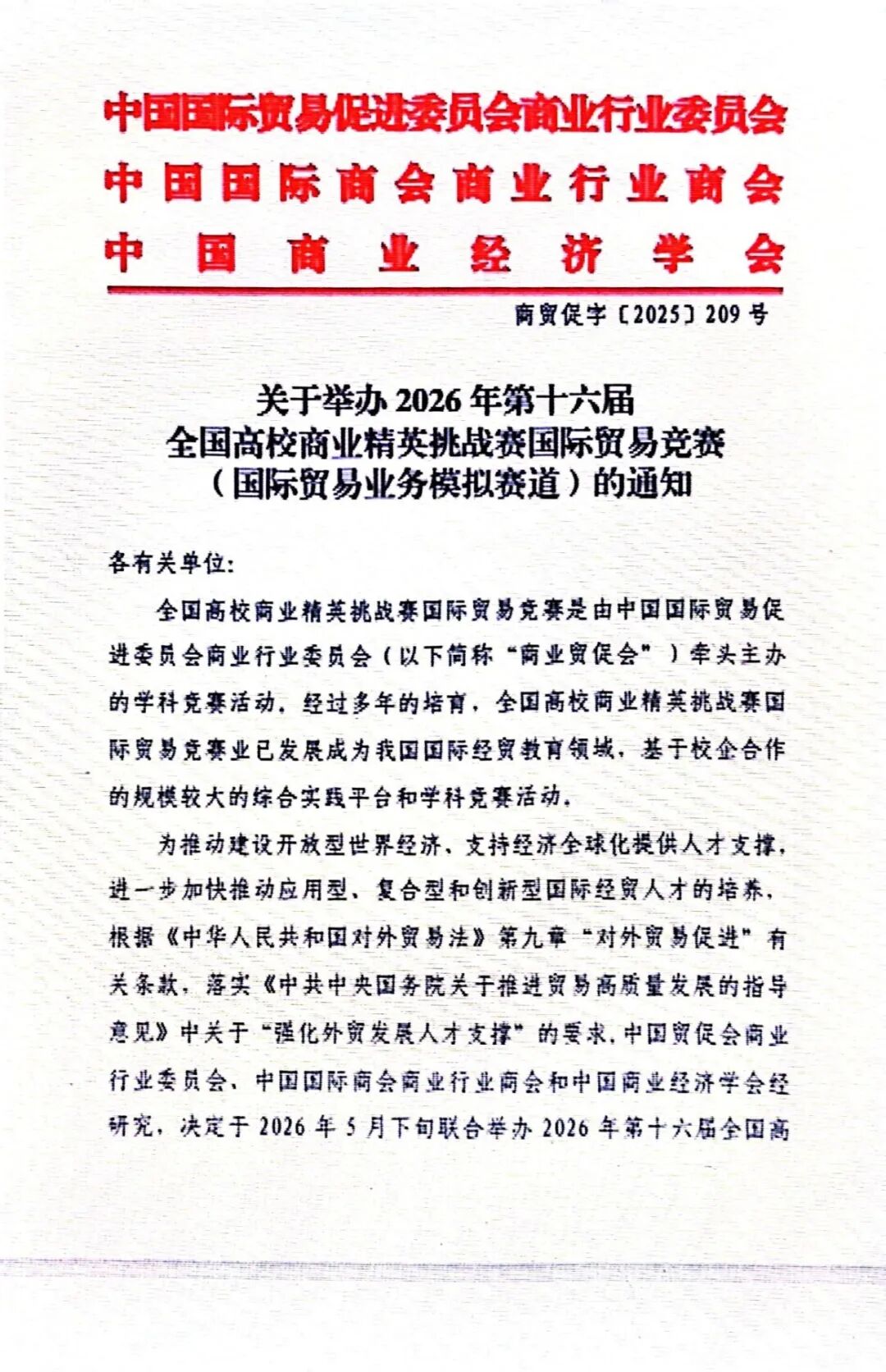 2026年第十六届全国商业精英挑战赛国际贸易竞赛(国际贸易业务模拟赛道)校内选拔赛通知