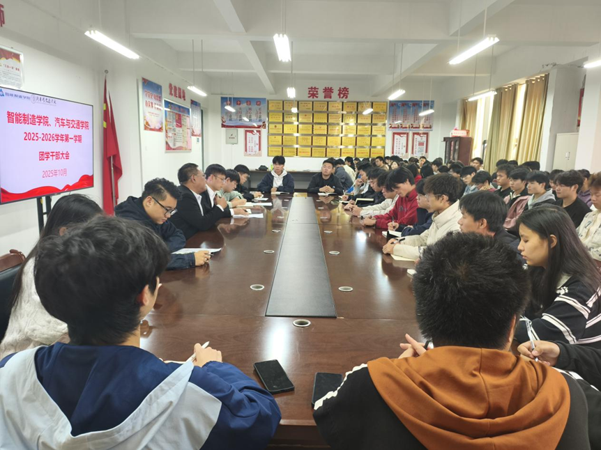 为明确新学期工作方向,凝聚团学骨干力量,10月22日中午,智能制造学院、汽车与交通学院2025-2026学年第一学期团学干部大会在学院会议室召开。学院党总支书记张毅出席会议并讲话,党总支副书记李愿主持会议并作工作要求,团总支书记彭熙麟、学生会指导老师李恒、新媒体中心指导老师邓鑫昌作工作安排,资助工作负责老师秦虹静及全体团学干部参加会议。