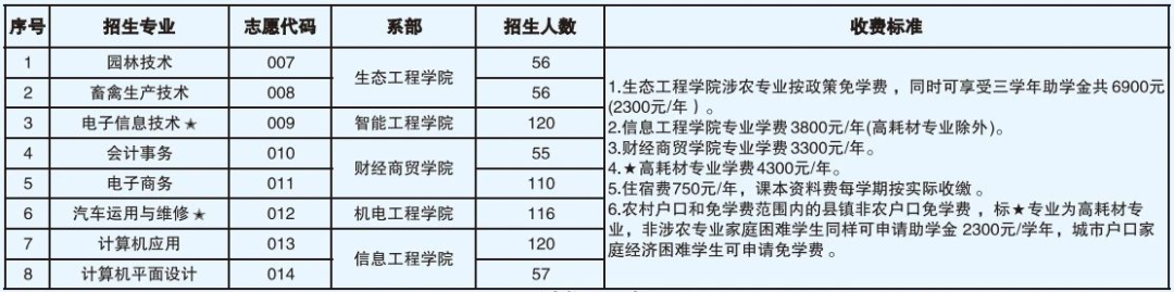 目前,学院设有计算机应用技术、物联网应用技术、应用电子技术、电气自动化技术、机械制造与自动化、工业机器人技术、新能源汽车技术、工业设计、建筑设内设计、园艺技术、动物医学、园林技术、电子商务、财务管理、投资与理财等15个专业。建设智能制造、电子集成、数控装调、自动控制、逆向技术及快速制造、工业机器人生产训练、电子商务、冷链物流、现代园艺、动物医护等多个能够满足现代职业教育需求的现代化生产实训中心,理工科特色鲜明。