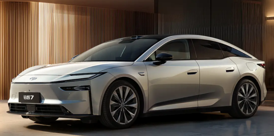 面对新势力的冲击,传统巨头终于亮出底牌。丰田展台最亮的星,是它与华为联合开发的纯电轿车“铂智7”。