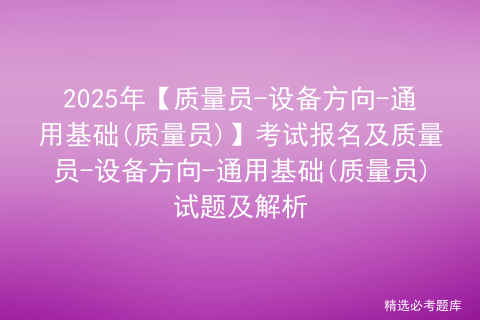 2025年质量员-设备方向-通用基础(质量员)考试报名为正在备考质量员-设备方向-通用基础(质量员)操作证的学员准备的理论考试专题,每个月更新的质量员-设备方向-通用基础(质量员)试题及解析祝您顺利通过质量员-设备方向-通用基础(质量员)考试。