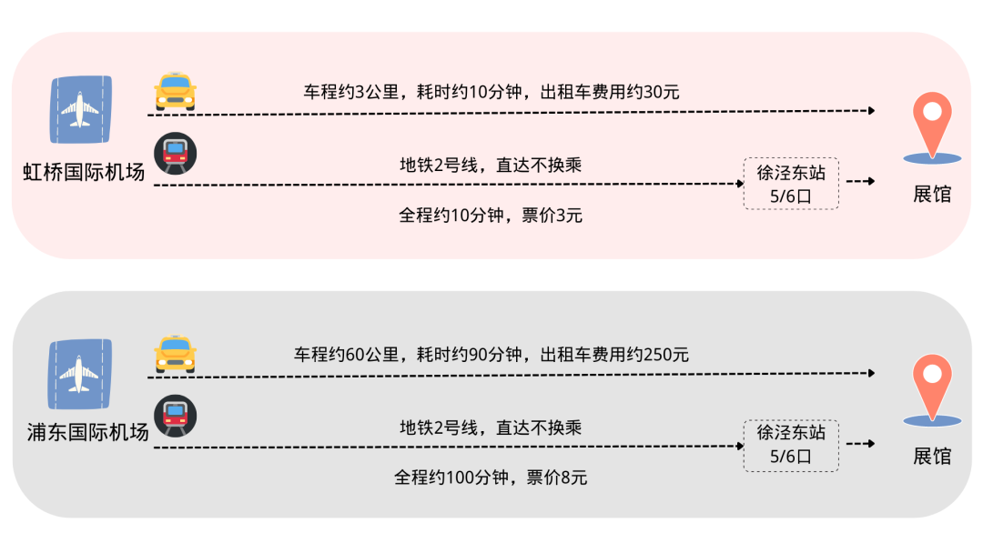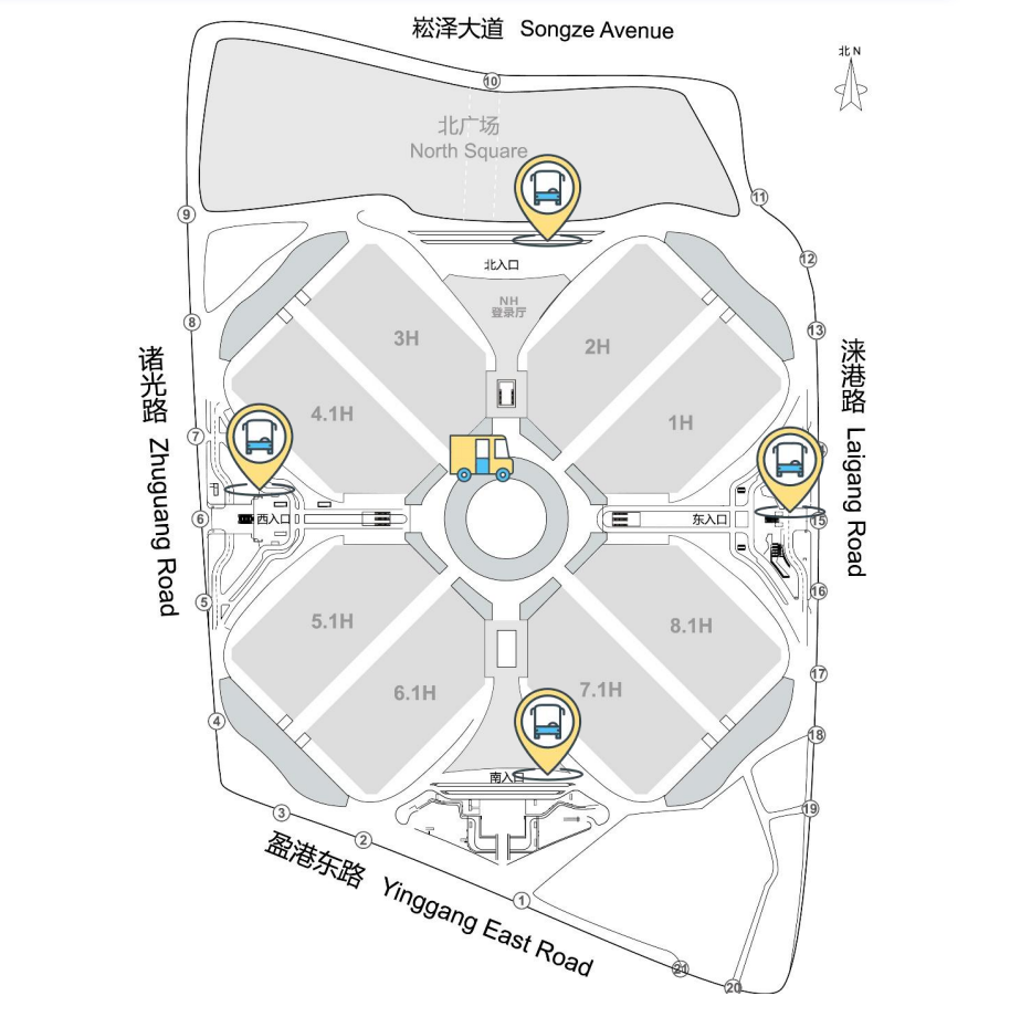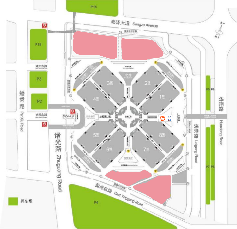 打开导航软件,输入“涞港路111号”抵达国家会展中心(上海)东广场,或导航至“盈港东路168号”抵达国家会展中心(上海)南广场。