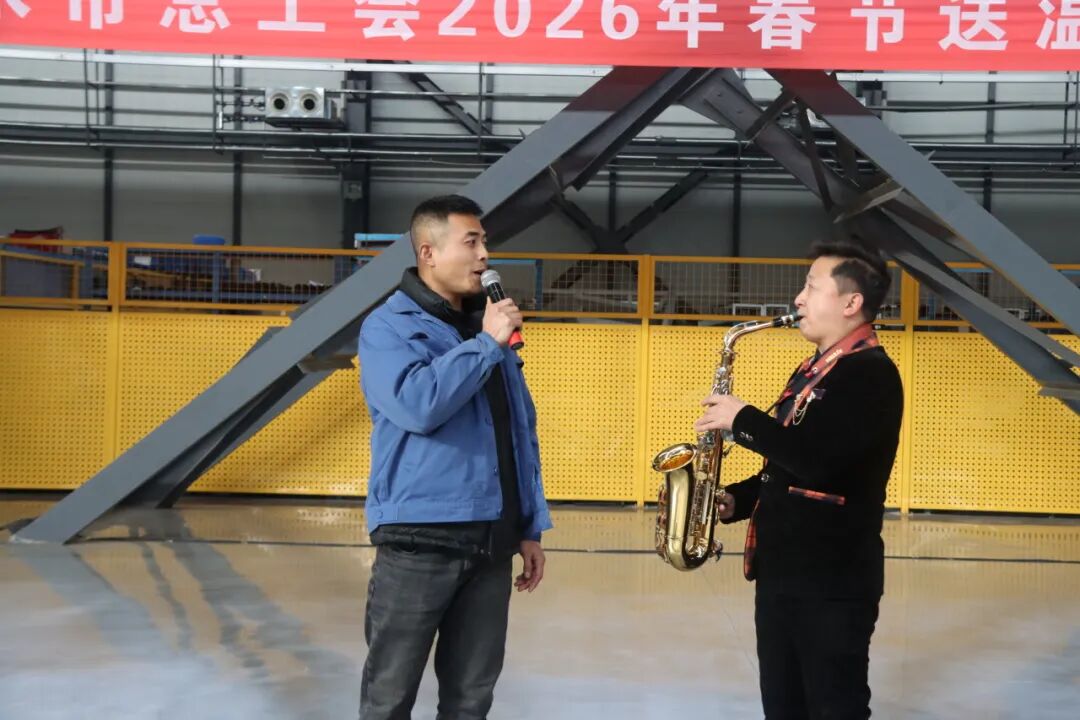活动现场,文化送暖环节气氛热烈。市职工合唱团文艺骨干以“团结宣传党的二十届四中全会精神、践行社会主义核心价值观”为主题,通过舞蹈、朗诵、器乐演奏等丰富多彩的表演形式,将党的政策与文艺表演巧妙融合,赢得了现场阵阵掌声。一首《我爱你中国》大合唱将演出推向高潮,唱出了天水产业工人对祖国母亲的眷恋和挚爱。