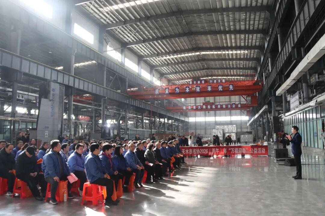 1月27日下午,天水市总工会2026年春节送温暖慰问活动在星火数控公司隆重举行。本次活动以“送法律、送政策、送文化、送健康”为主题,将专业服务与人文关怀直接送达企业一线,为冬日里的产业工人送上了一份暖心厚礼。市总工会副主席胡桂琳,组织宣教部部长孔岩参加活动。