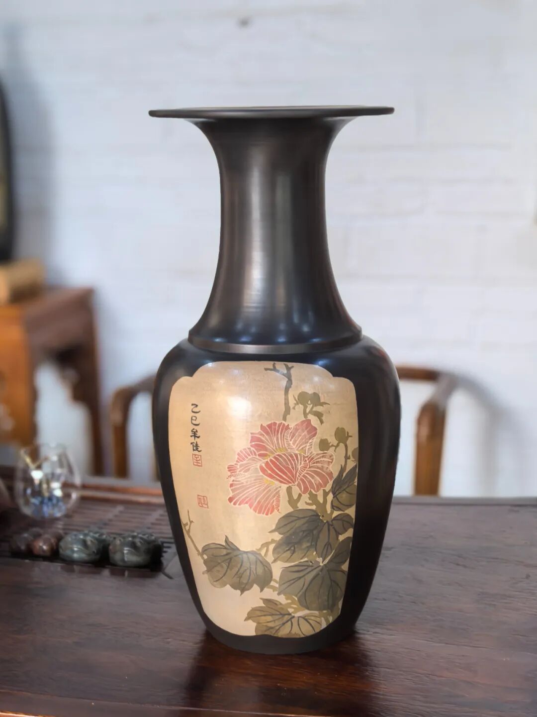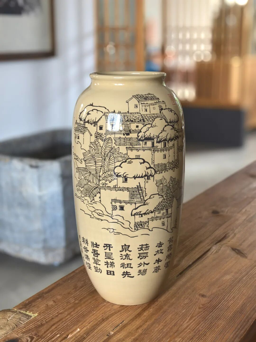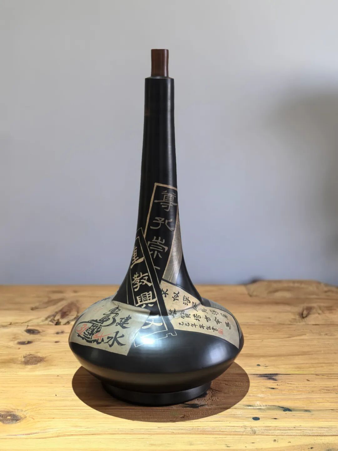 《礼赞文笔》此作是一件以器载道、致敬历史的艺术创作。灵感源于建水的地标与文化象征——文笔塔。设计摒弃了传统宝塔瓶的繁复佛教意象,独辟蹊径,以“中华宝塔古今无”的独特造型为蓝本,采用残贴的装饰手法,旨在将一座城的文脉精神凝聚于一器之上。作品超越了单纯的形似,更追求神韵的契合,通过紫陶语言:不同的残帖上画有文笔塔风貌,书写文笔塔的历史、古诗、成语、建筑奥秘,讲述建水“文献名邦”的尊儒重教传统,使宝塔瓶成为一座可立于案头的“精神图腾”。